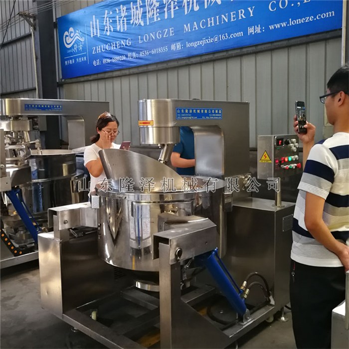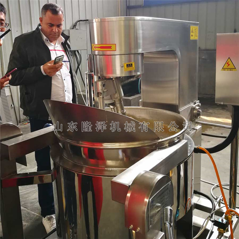 食品接觸部位均采用不鏽鋼材料製造並高(gāo)亮度拋光處理。采用u形鍋體,鍋體采用不鏽鋼(gāng)製造,表麵接觸部(bù)分均采用sus304不鏽(xiù)鋼(gāng)材質,易於清洗符合食品衛生要求(qiú)。隆(lóng)澤機械供應元宵餡料攪拌炒(chǎo)鍋,大型雪花酥攪拌機,可實現元宵芯餡料的翻炒,糯米餡料(liào)炒製等工藝。但注意炒糖色(sè)的火候並不是一成不變,如糖會在鍋底糊而(ér)有確定糖夠的話,請在剛起沫時起鍋離火或關火,待(dài)沫(mò)由大泡轉(zhuǎn)為小(xiǎo)泡時立刻回(huí)火下料