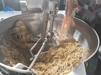 預(yù)製菜廠家大型工廠(chǎng)都在用的全自動炒菜(cài)機 不糊鍋不粘鍋 行星攪拌炒鍋采用一次性成型的(de)不鏽(xiù)鋼鍋體,保證了鍋內的平整光(guāng)滑。攪拌係統采用自轉公轉相結合的方式,其傳動比為不整...