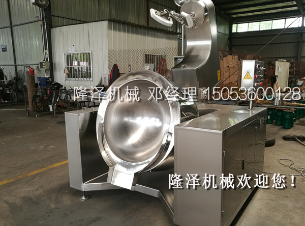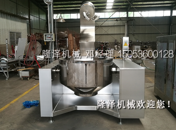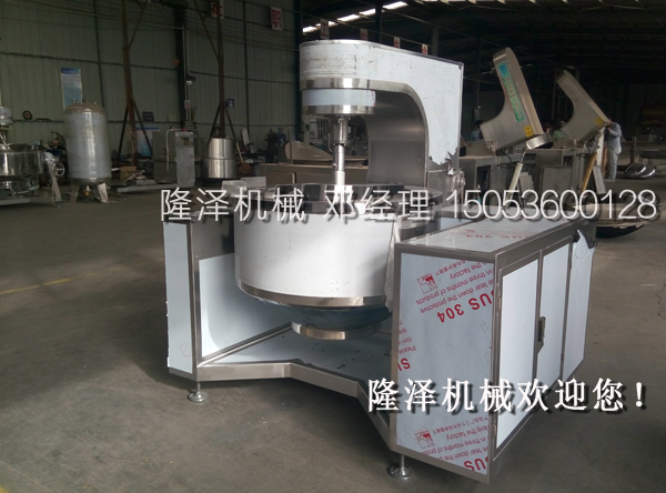 本產(chǎn)品為電磁炒(chǎo)醬鍋,本款機型是根據客戶(hù)要(yào)求攪拌頭縮小,提(tí)高攪(jiǎo)拌速度(dù)。架體一側加寬,可方便工人放料投料。