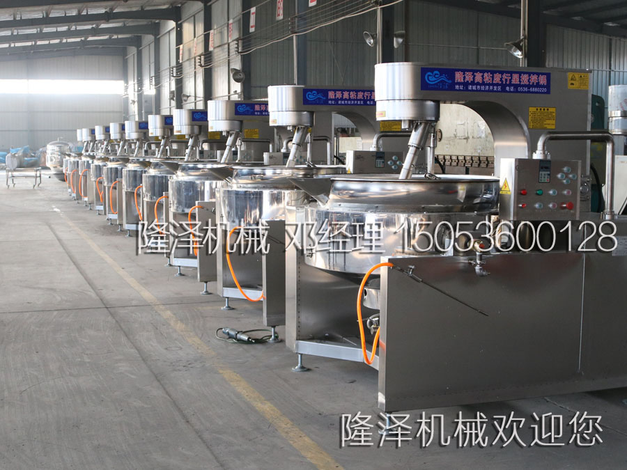 自動炒醬機是(shì)一款現代科(kē)技產品,新一代微電腦操控智能烹飪設備,無油煙、無輻射、省油省電、自動翻炒。炒醬機(jī)還有自動炒(chǎo)、爆、燉等多功能自動炒菜機,方便,簡單的操作讓你隻需輕輕一按,即可遠離廚房油煙危害(hài),輕鬆享受美(měi)味,實(shí)現了做飯過程的自動(dòng)化和趣味化。還可以根(gēn)據型號的不同,適用於(yú)學校食堂、企業食堂、部隊食堂及熟食(shí)品加工行業。