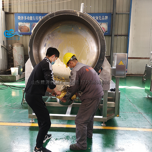 行星攪拌炒鍋使用先進的傳動與密封結構,使傳動部分與鍋內潔淨、衛生。采用變頻調速動力,運行更平穩。采用液壓升降(jiàng),翻鍋運料,免拆裝攪拌器,節省人力,降低勞動強度,是性能優良的食品加工設備(bèi)。