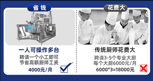 3.麻豆免费视频全(quán)自動炒菜機高效、節能(néng),運行費用更低;