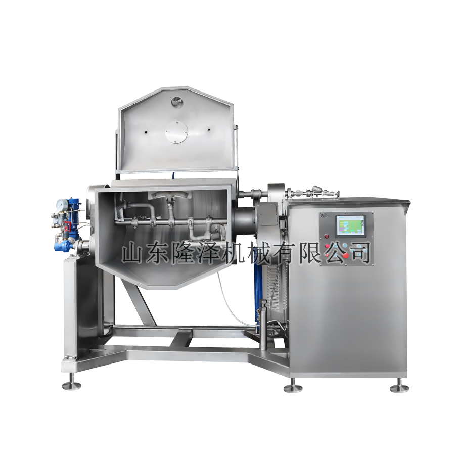 你(nǐ)還在為炒(chǎo)製高粘度物料易(yì)粘鍋、糊鍋而煩惱嗎? 下麵介紹一款專門(mén)解決(jué)它的克星- 橫軸攪拌(bàn)炒鍋 ,該設備是一款可抽真空、加熱攪拌的智能攪拌炒鍋,該設備特別適用於熱敏感原料及