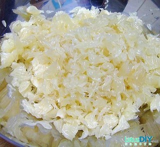 4. 柚子瓤去掉外層薄膜和(hé)籽,然後剝(bāo)成(chéng)碎塊!不用剝的太(tài)碎,因為在煮的過程中柚子瓤會自然(rán)散開。