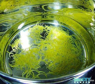 3. 刮(guā)成薄片的柚子皮改(gǎi)刀切成細絲,越細越好!!這樣是為了(le)保證成(chéng)品的(de)口感(gǎn)。