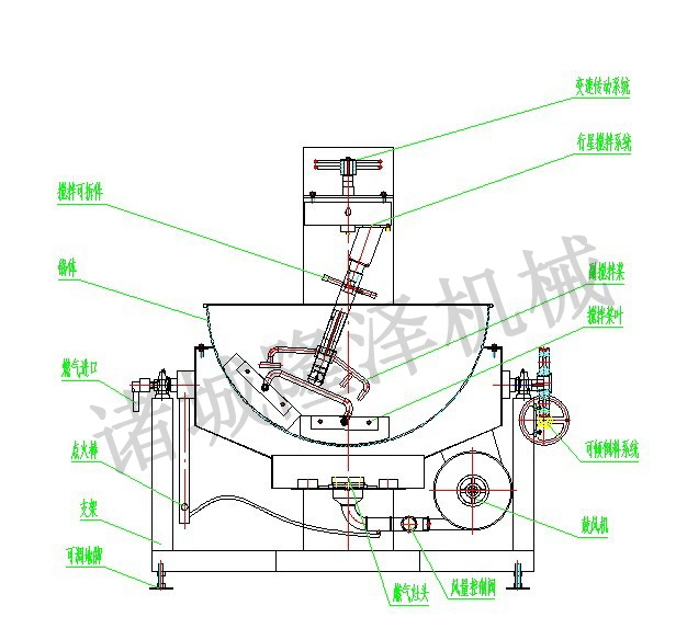 主要由鍋體、架體(tǐ)、攪拌係統、加熱係統、調速傳動裝置、攪拌軸、鍋(guō)體翻轉係統等組成。 行星攪拌夾層鍋從類型上(shàng)分為手動與全(quán)自動。 從(cóng)加熱(rè)形式上分為:蒸汽式、燃氣式、燃氣導熱(rè)油和電加熱導熱油。